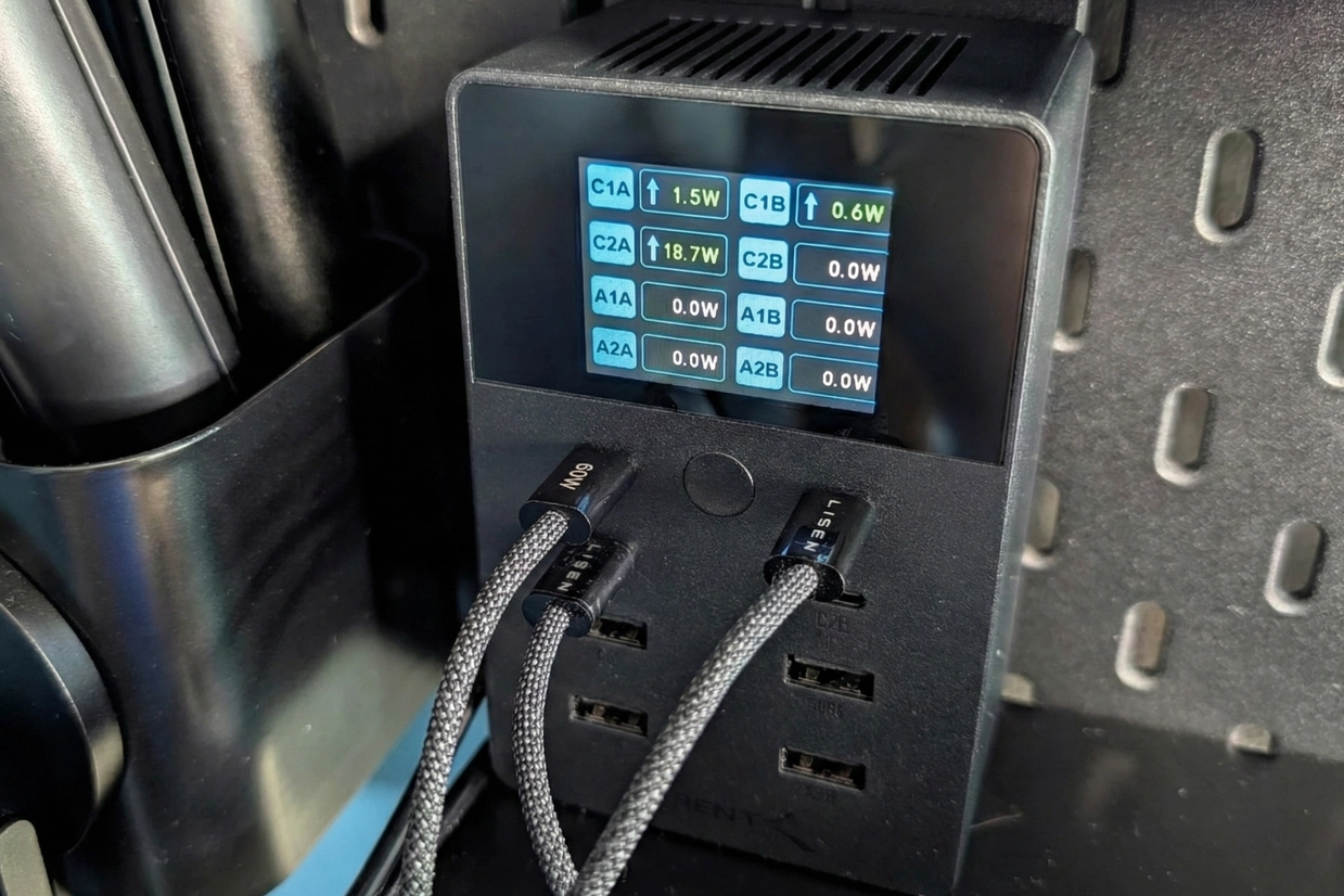 - Stat Tracking: The built-in screen shows real-time wattage, voltage, temperature, and charging duration for every port.