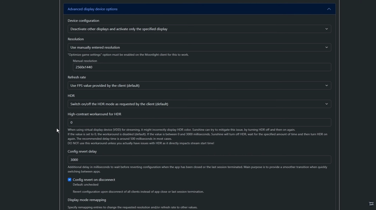 - In Sunshine's Configuration > Video settings, set it to capture this specific display name.